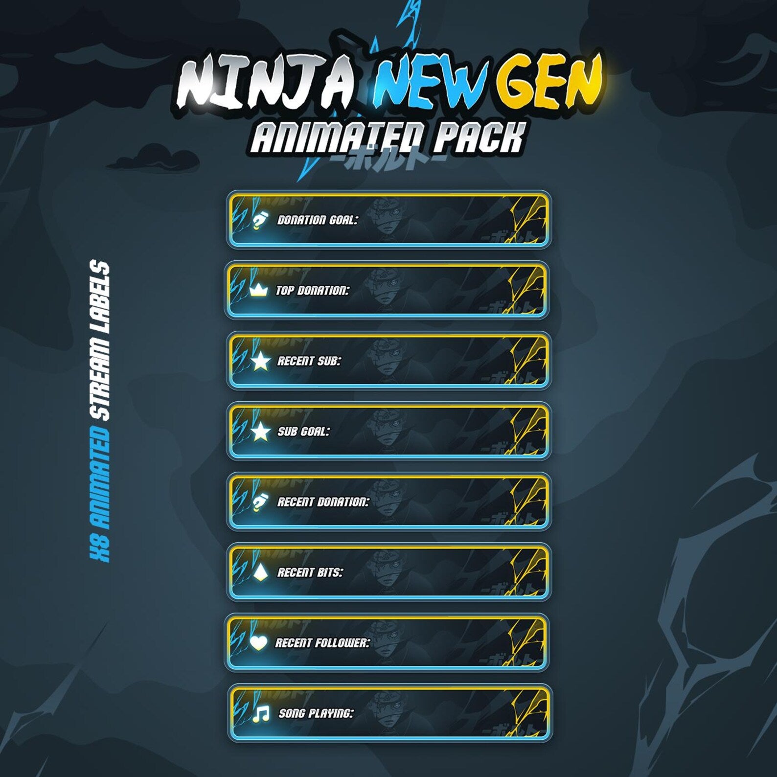 This full stream kit is perfect for Twitch, YouTube, and Kick streamers who want clean, animated overlays with a smooth, modern aesthetic.